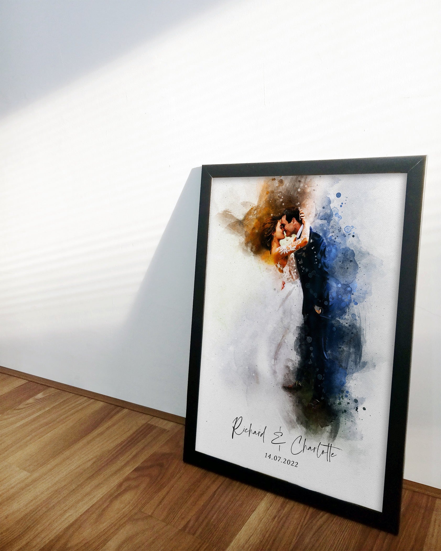 Capture the magic of your special day with a Custom Wedding Portrait! This beautiful, hand-painted watercolour illustration transforms your cherished photo into a unique keepsake, perfect for celebrating love and commitment. Ideal for wedding anniversaries, engagements, or as a thoughtful gift for couples, this artwork is created with meticulous attention to detail to reflect the warmth and joy of your relationship.