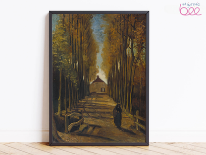 Immerse yourself in the serene beauty of Vincent van Gogh’s "The Avenue of Poplars in Autumn." This evocative masterpiece captures a tranquil path lined with towering poplar trees in warm autumn hues, evoking a sense of quiet reflection. The striking composition and rich, earthy tones make this artwork a captivating addition to any space. Whether as a premium canvas or a framed print, it brings the poetic charm of Van Gogh's vision into your home.